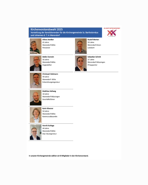 Unsere Kandidaten für die Kirchenvorstands- und Pfarreiratswahl am 08./09.11.2025