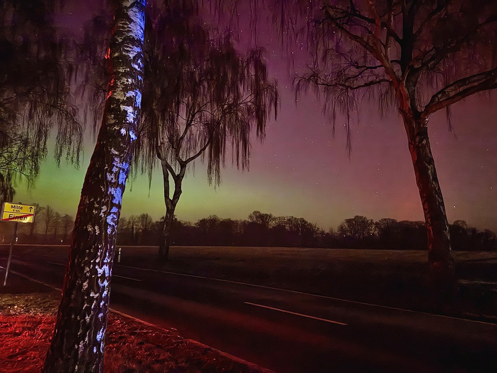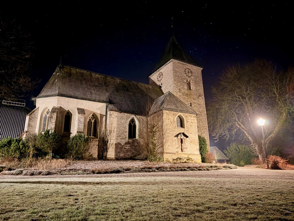 Aufnahmen vom 19. auf den 20.01., die nächtliches Leuchten über Einen zeigen. Außerdem beeindruckt die Alte Kirche vor dem winterlich klaren Sternenhimmel.