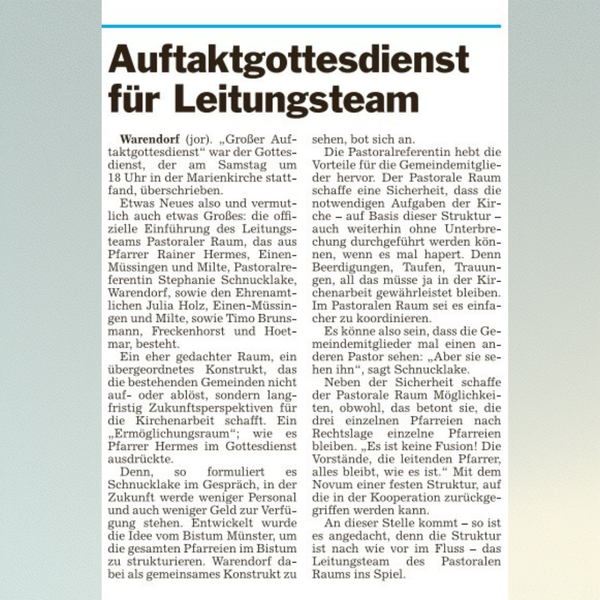 Auftaktgottesdienst zum Pastoralen Raum Warendorf